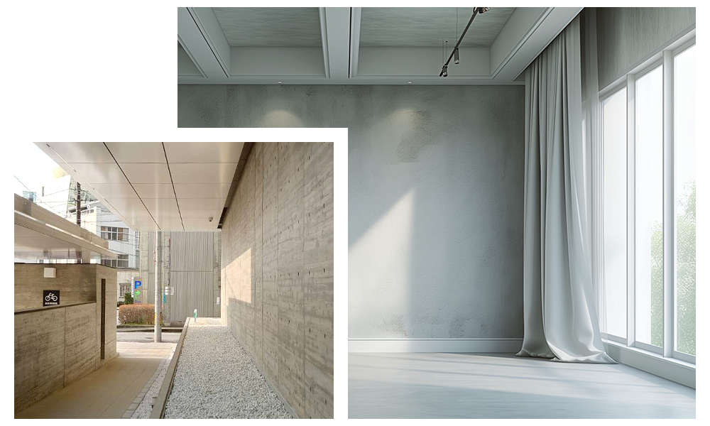 弊社は石川県金沢市を拠点に、コンクリート打ち放しや杉板模様の補修・修繕・修復の化粧仕上げ工事を手がけています。戸建てや公共施設など幅広い建物を対象に施工・補修・修繕・修復を行なっております。